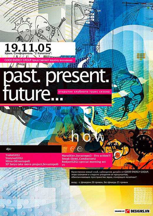 8. Sơ đồ thiết kếSơ đồ thiết kế là cách bạn sắp xếp các yếu tố đồ họa trên poster của mình. Khi làm điều này hãy chú ý đến sự di chuyển của mắt người xem. Sắp xếp đã dễ đọc và dễ hiểu chưa? Các thông tin quan trọng đã được nêu bật chưa? Bên cạnh đó, bạn cũng cần chú ý đến sự cân bằng trong thiết kế poster, không đặt quá nhiều ảnh về 1 bên, 1 phía của poster.9. Sử dụng ít từPoster nghĩ là chuyển tải thông điệp bằng hình ảnh vì vậy hãy giữ số từ ít nhất có thể. Một poster có nhiều chữ là một poster không hiệu quả.10. Biết kích cỡ của posterHãy chắc chắn rằng tất cả những gì bạn thiết kế trên máy tính sẽ in vừa vặn với kích cỡ của poster.