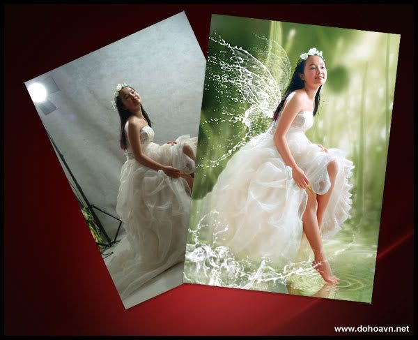 Bước cuối cùng là ghéo thêm đôi cảnh thiên thần và các hiệu ứng nước tung tóe vào, bạn có thể download Brush cánh nước tại link: BRUSH NƯỚC để ghép cánh cho đẹp